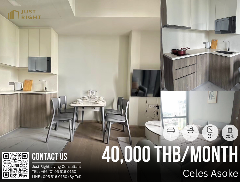 For rent Celes Asoke, 1 bedroom, 1 bathroom, size 35* sq m, 2x floor, fully furnished, complete electrical appliances, beautiful room, ready to move in, price 40,000 baht/month (1 year contract only)